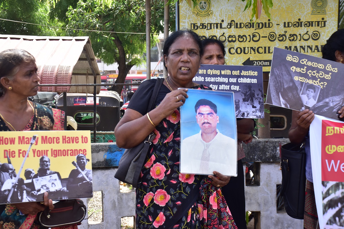 “இன்று கத்தரிக்காய் கறி காய்ச்சு சோறு சாப்பிட்டுவிட்டு இருக்கின்றோம். கஷ்டமாகத்தான் இருக்கு,” என்கிறார், மன்னார் மாவட்ட வலிந்து காணாமல் ஆக்கப்பட்டவர்களின் உறவினர்கள் சங்கத்தின் தலைவியும், காணாமல் ஆக்கப்பட்ட, 24 வயதுடைய தன்னுடைய புதல்வரான அன்ரன் சனிஸ்ரன் பிகிறாடோவுக்கு என்ன நடந்தது என அறியாது பரிதவிக்கும் தாயுமான மனுவெல் உதயச்சந்திரா.